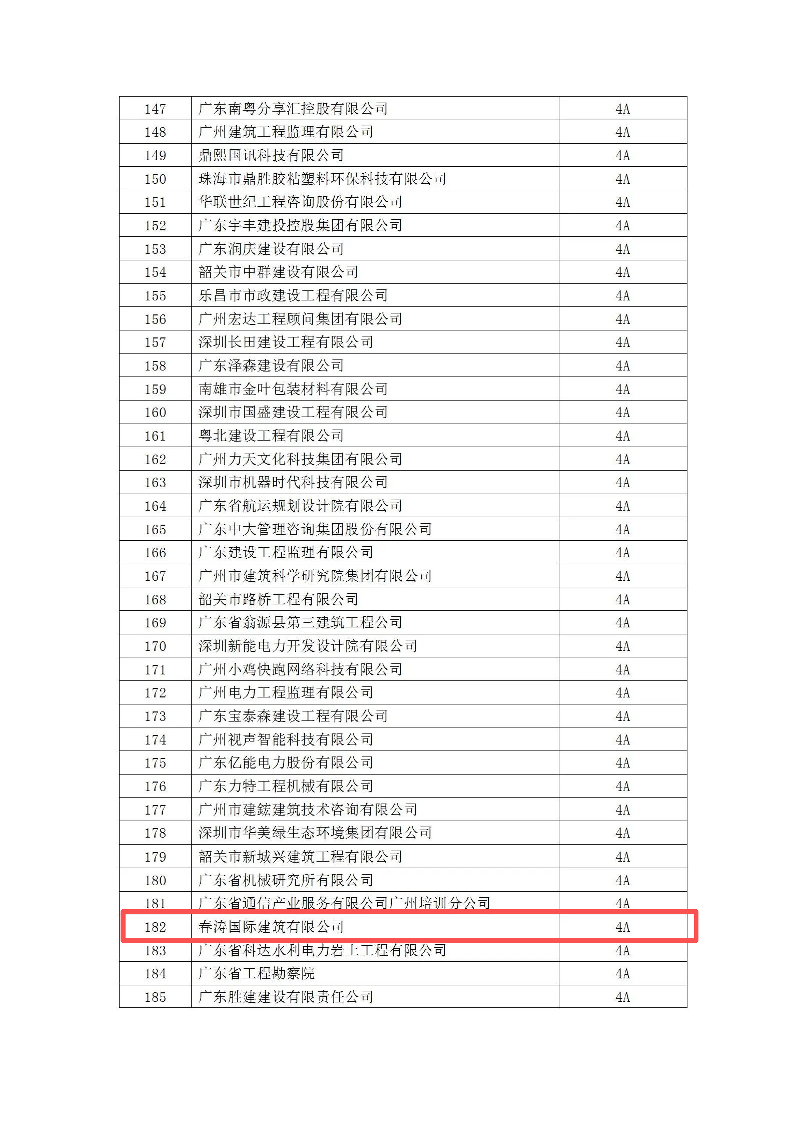 依据《守合同重信用企业等级评定规范》(T/GDMA 38-2024)团体标准,本协会对1376家企业提交的申请材料进行了综合评价,最终确定广东省建筑工程集团股份有限公司、中建科工集团有限公司等1054家企业通过广东省“守合同重信用”等级评定,其中74家企业获得5A评级,296家企业获得4A评级,684家企业获得3A评级。现将企业名单予以公布。