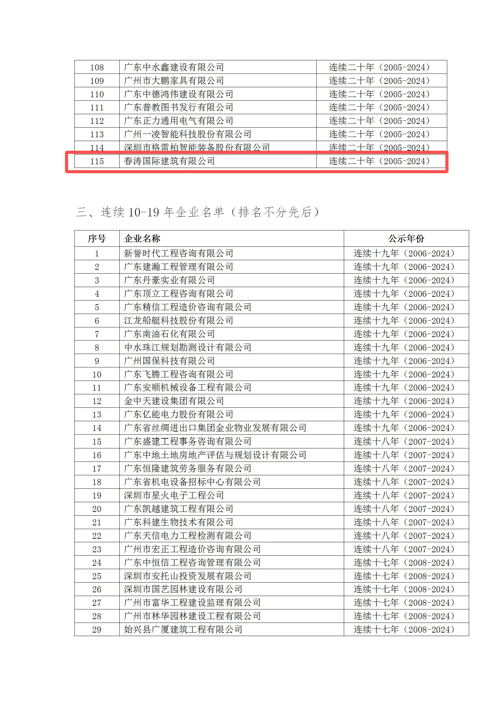 参与评定的企业涵盖了建筑工程、建筑装饰、建筑材料、工程监理、房地产、互联网、金融、电力、电子信息、医药、农业、农资、教育、科技、文化等领域。广东省第二建筑工程有限公司、广州机施建设集团有限公司等1000家企业通过了2024年第一批广东省“守合同重信用企业”评定,其中连续30年(含30年)以上的企业有41家,连续20-29年的企业有115家,连续10-19年的企业有216家,连续10年以内的企业有628家。